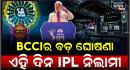 IPL 2026: ଇଣ୍ଡିଆନ୍ ପ୍ରିମିୟର ଲିଗ୍ ସିଜିନ୍ ୧୯ ପାଇଁ ନିଲାମର ତାରିଖ ଘୋଷଣା କରାଯାଇଛି। IPL ୨୦୨୬ ନିଲାମ ସମ୍ପର୍କରେ ବଡ଼ ଘୋଷଣା କରିଛି ବିସିସିଆଇ। ଡିସେମ୍ବର ୧୬ରେ ଆବୁଧାବିର ଏତିହାଦ ଆରେନାରେ ଅନୁଷ୍ଠିତ ହେବ। ତୃତୀୟ ଥର ପାଇଁ
