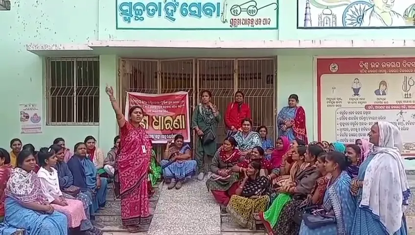 ଭଦ୍ରକ ୨୧।୧୨: ବିପିଏମ୍ଙ୍କୁ ବିରୋଧ କରି ଧାରଣା । ବଦଳି ନହେଲେ ଆନ୍ଦୋଳନ ଚେତାବନୀ ଦେଲେ ମହିଳା ସ୍ବାସ୍ଥ୍ୟକର୍ମୀ ଓ ଆଶାକର୍ମୀ । ଭଦ୍ରକ ଜିଲ୍ଲା ଭଣ୍ଡାରିପୋଖରୀ ମେଡ଼ିକାଲ ସମ୍ମୁଖରେ ବିପିଏମ୍ ରଶ୍ମିରେଖା ପୃଷ୍ଟିକୁ ବି