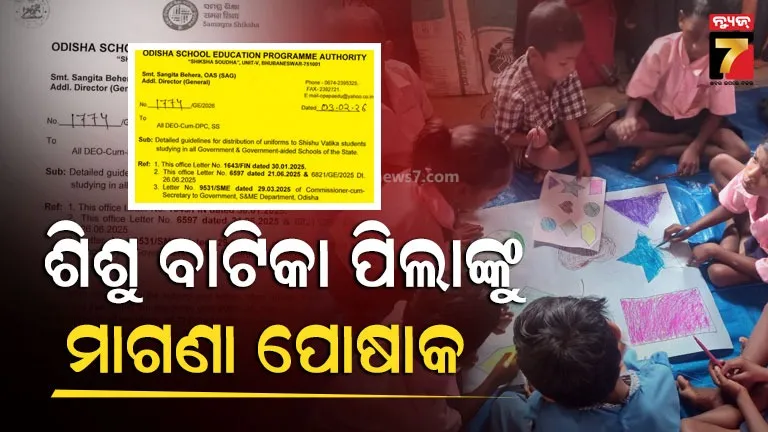 ଭୁବନେଶ୍ୱର ୦୪/୦୨: ଶିଶୁ ବାଟିକା ପିଲାଙ୍କୁ ମିଳିବ ମାଗଣା ପୋଷାକ । ୧୫ ଫେବୃଆରୀ ସୁଦ୍ଧା ବଣ୍ଟନ ଶେଷ କରିବାକୁ ଓସେପାର ନିର୍ଦ୍ଦେଶ । ରାଜ୍ୟର ପ୍ରାକ୍-ପ୍ରାଥମିକ ଶିକ୍ଷା ବ୍ୟବସ୍ଥାକୁ ଅଧିକ ସୁଦୃଢ଼ ଓ ଆକର୍ଷଣୀୟ କରିବା ପାଇ