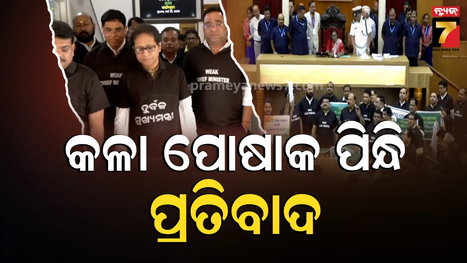 ଭୁବନେଶ୍ୱର ୨୫।୦୩ : ବିଧାନସଭାରେ ନିଆରା ପ୍ରତିବାଦ । ସବୁ ଦିନ ବିରୋଧୀ ଗୃହରେ ପ୍ଲାକାର୍ଡ ଧରି ପ୍ରତିବାଦ କରନ୍ତି , ହେଲେ ବୁଧବାର ଦେଖିବାକୁ ମିଳିଲା କିଛି ନିଆରା ଚିତ୍ର । ବିରୋଧୀ ସଦସ୍ୟମାନେ କଳା ପୋଷାକ ପିନ୍ଧି ପ୍ରତ