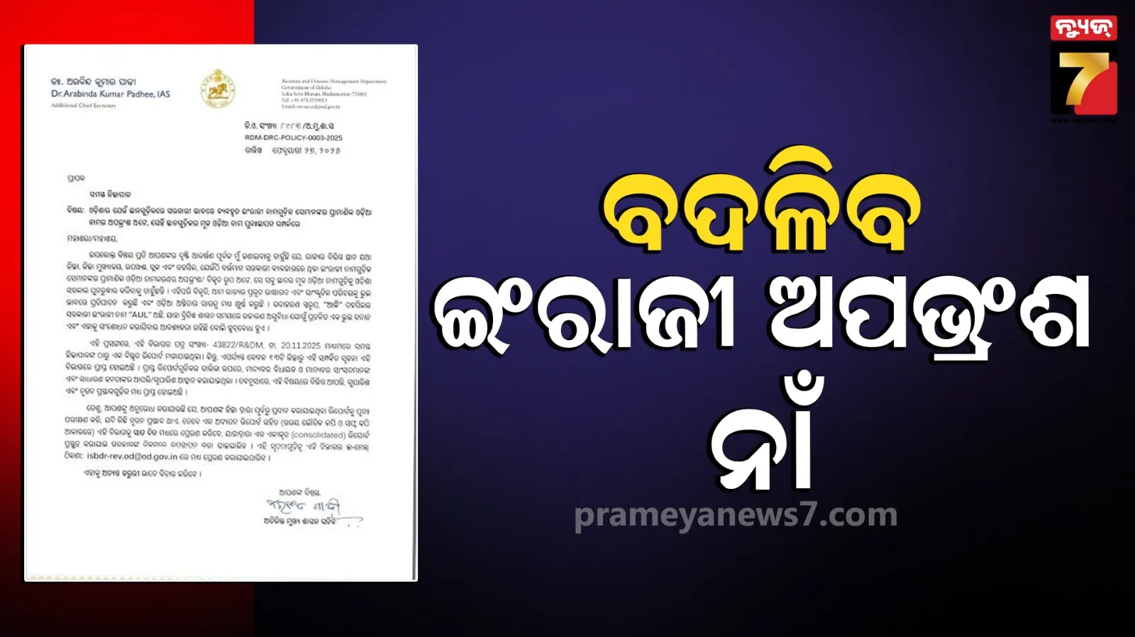 ମୂଳ ଓଡ଼ିଆ ନାମର ହେବ ପୁନରୁଦ୍ଧାର, ବିଭିନ୍ନ ଜିଲ୍ଲାପାଳଙ୍କୁ ଚିଠି ଲେଖିଲେ ରାଜସ୍ବ ସଚିବ