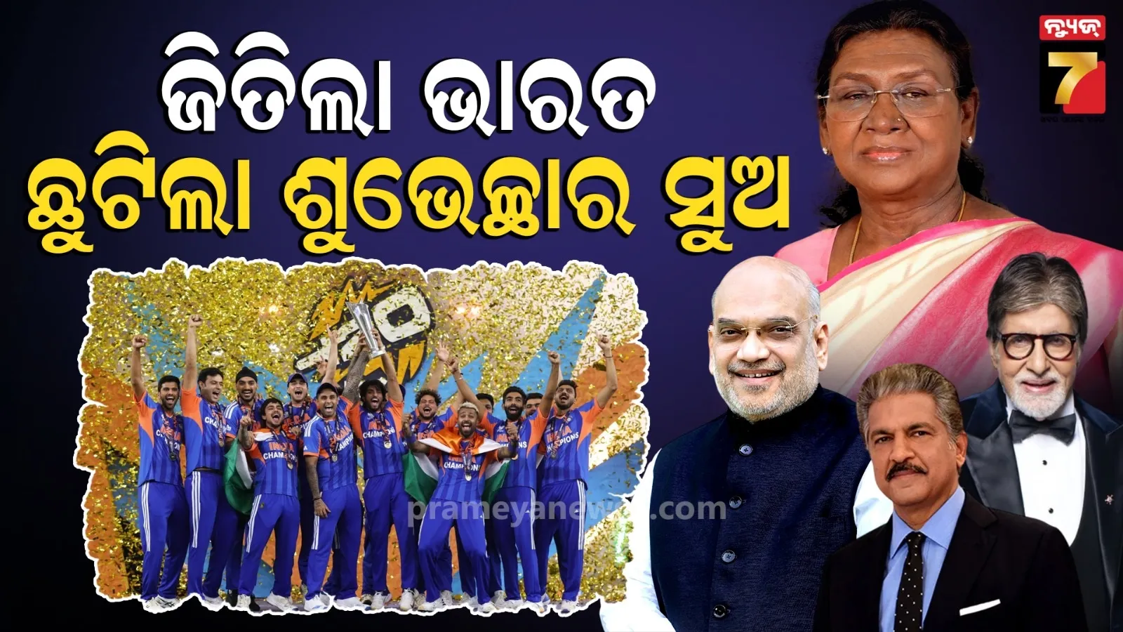 ଅହମ୍ମଦାବାଦ: ଟି-୨୦ ବିଶ୍ଵକପ୍ ୨୦୨୬ର ଟାଇଟଲ୍ ଜିତି ଇତିହାସ ରଚିଲା ଟିମ୍ ଇଣ୍ଡିଆ। ପ୍ରଥମ ଦଳ ଭାବେ ତୃତୀୟ ବିଶ୍ଵକପ୍ ଟ୍ରଫି ଜିତି ଇତିହାସ ରଚିଛି ଭାରତୀୟ ଦଳ। ଭାରତୀୟ ଦଳର ବିଜୟରେ ଶୁଭୋଚ୍ଛା ଜଣାଇଛନ୍ତି ପ୍ରଧାନମନ୍ତ୍ରୀ ନରେନ୍ଦ୍ର ମୋଦ...
