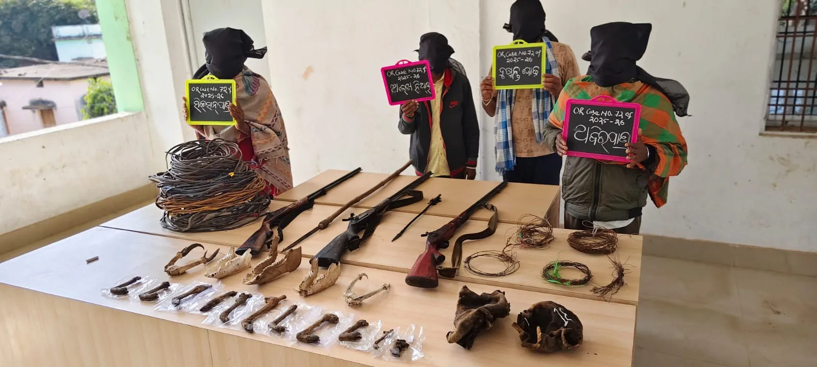 ବେଲଘର ହାତୀ ମୁତ୍ୟୁ ଘଟଣା : ୪ ଶିକାରୀ ଗିରଫ, ଦେଶୀ ବନ୍ଧୁକ ସହ ଧନୁ ତୀର ଜବତ
