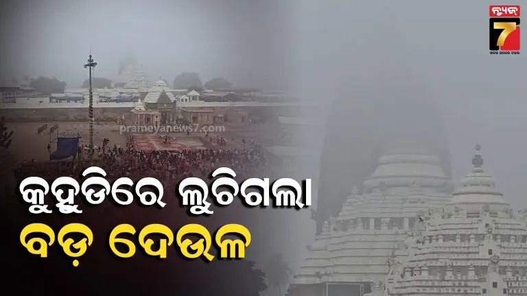 ପୁରୀ ୨୫।୧୨ : ଲୁଚିଗଲା ଶ୍ରୀମନ୍ଦିର । ବଡ଼ଦେଉଳକୁ ଢାଙ୍କି ରହିଗଲା ଘନ କୁହୁଡ଼ି । ବଡ଼ଦାଣ୍ଡ ଠାରୁ ଶ୍ରୀମନ୍ଦିର ଯାଏଁ ଘନ କୁହୁଡି ଯୋଗୁଁ ଦୃଶ୍ୟମାନ ହେଲା ନାହିଁ ନୀଳଚକ୍ର ଓ ପତିତପାବନ। ଗୁରୁବାର ସକାଳୁ ସକାଳୁ ଏଭଳି ଦୃଶ୍ୟ ଦେଖିବା...
